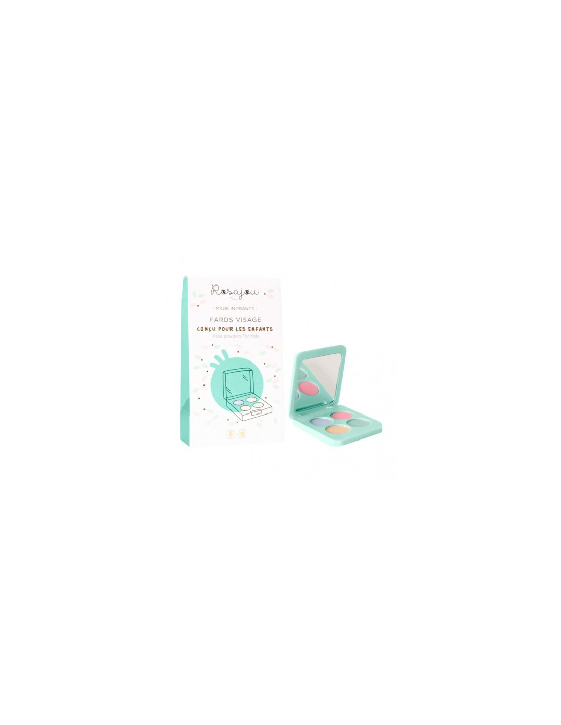 4 polvos para la cara: rosa, dorado, azul y verde. Para mejorar el aspecto y hacer ojos de ciervo.