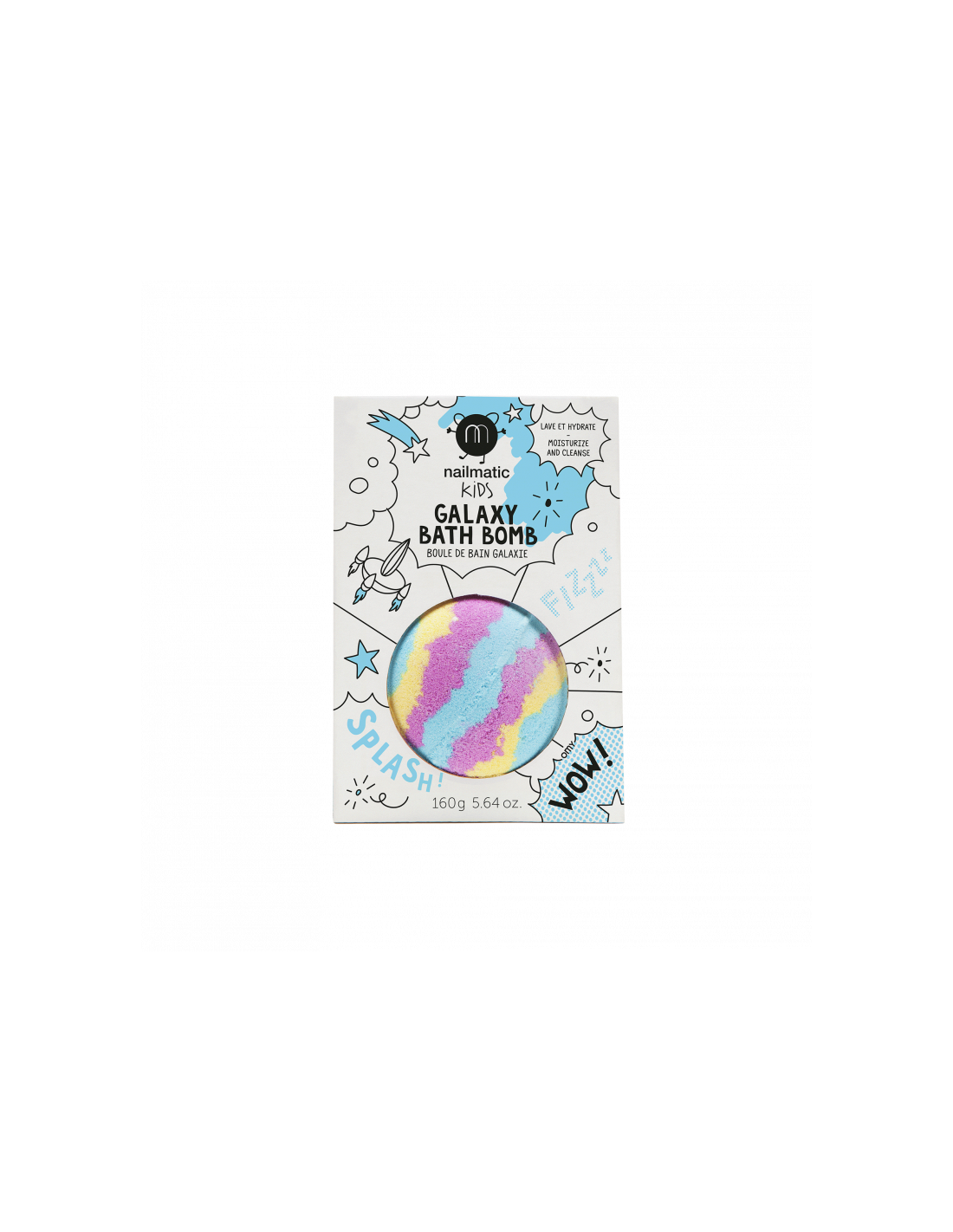 Bola de Baño Galaxy de Nailmatic, bola de baño efervescente. ¡Llena tu bañera de burbujas y colorido azul! La hora del baño será más divertida y relajante con estas fantásticas burbujas de baño. Fórmula respetuosa enriquecida con aceite de almendras dulces y vitamina E para una hidratación suave y una piel suave. No dejan manchas ni en la piel, ni en la ducha.