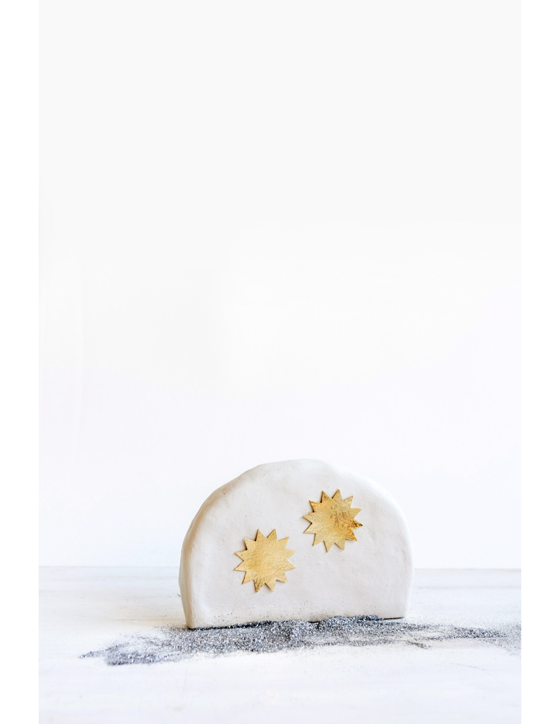 Verne son dos grandes soles acabados con textura y están fabricados en latón y chapados en oro de 18kt, son libres de níquel y plomo.