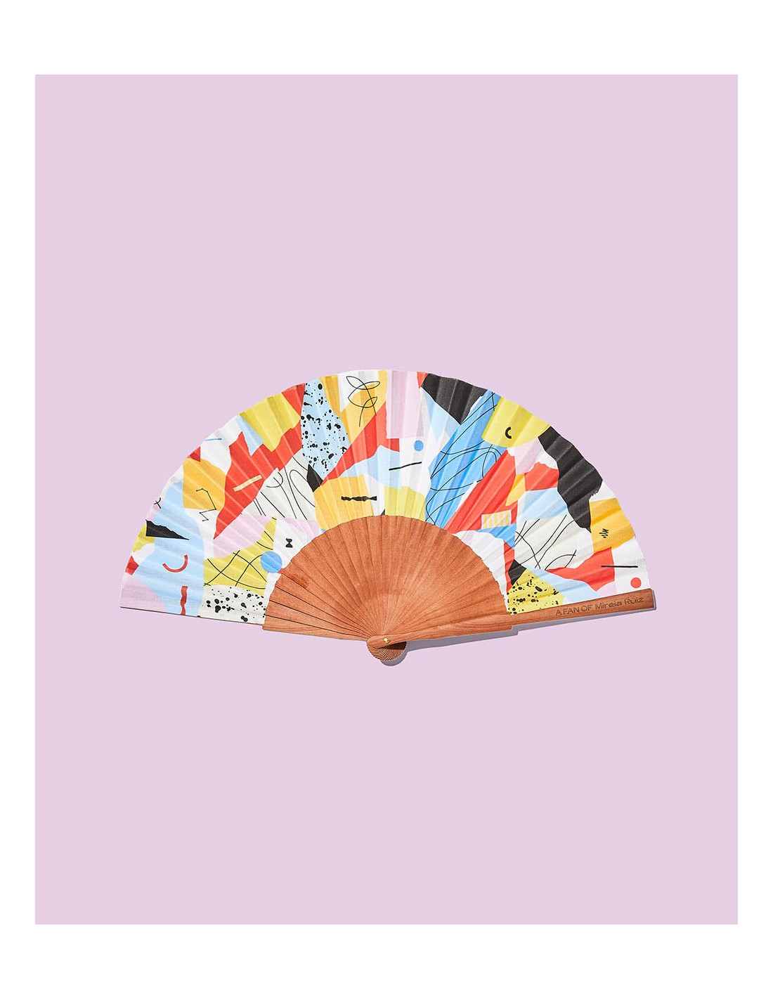 La energía y vitalidad que Mireia Ruiz impregna en la creación de su abanico arroja un fuerte halo de optimismo donde la abstracción, los colores potentes, las formas gráficas y el ritmo visual lo son todo.