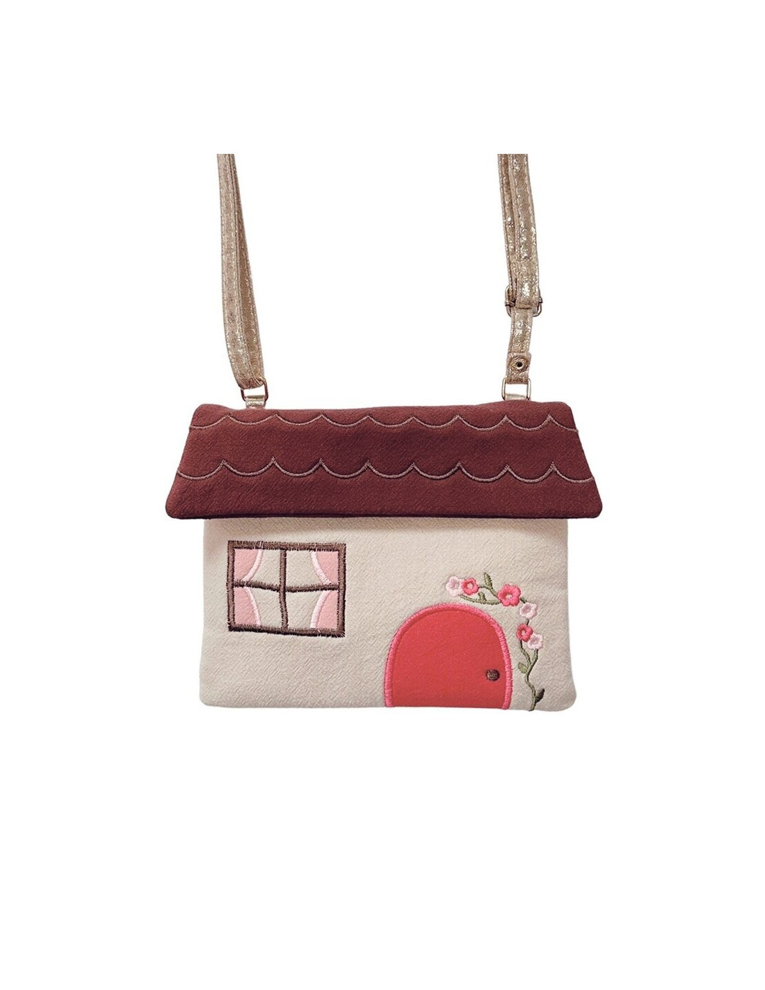 Nuestra acogedora bolsa tipo cabaña está hecha de tela suave con hermosos detalles bordados. Este bolso cuenta con un cierre de puntos magnéticos, un hermoso forro de cuadros y una correa dorada ajustable con un punto de ruptura para mayor seguridad.