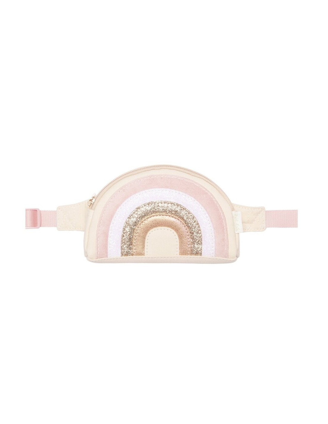 ¡Ilumina incluso el día más lluvioso con nuestra riñonera arcoíris encantada! En una paleta de hermosos colores suaves con un magnífico brillo dorado y suave terciopelo, este lindo bolso está completamente forrado con una tela satinada con manchas, cierre de cremallera, correa ajustable y presilla para cinturón.