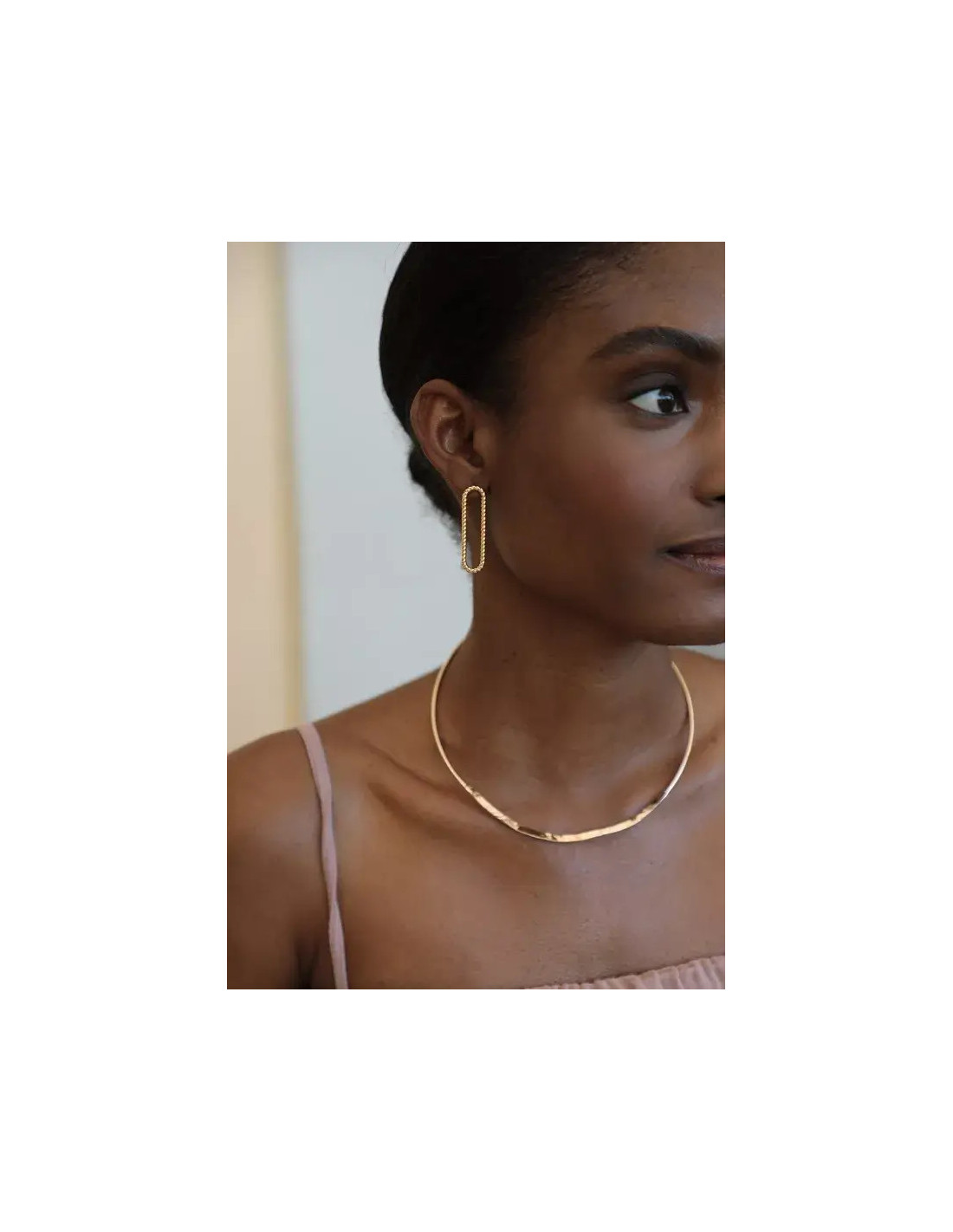 Pendientes ovalados trenzados, ligeramente elevados.