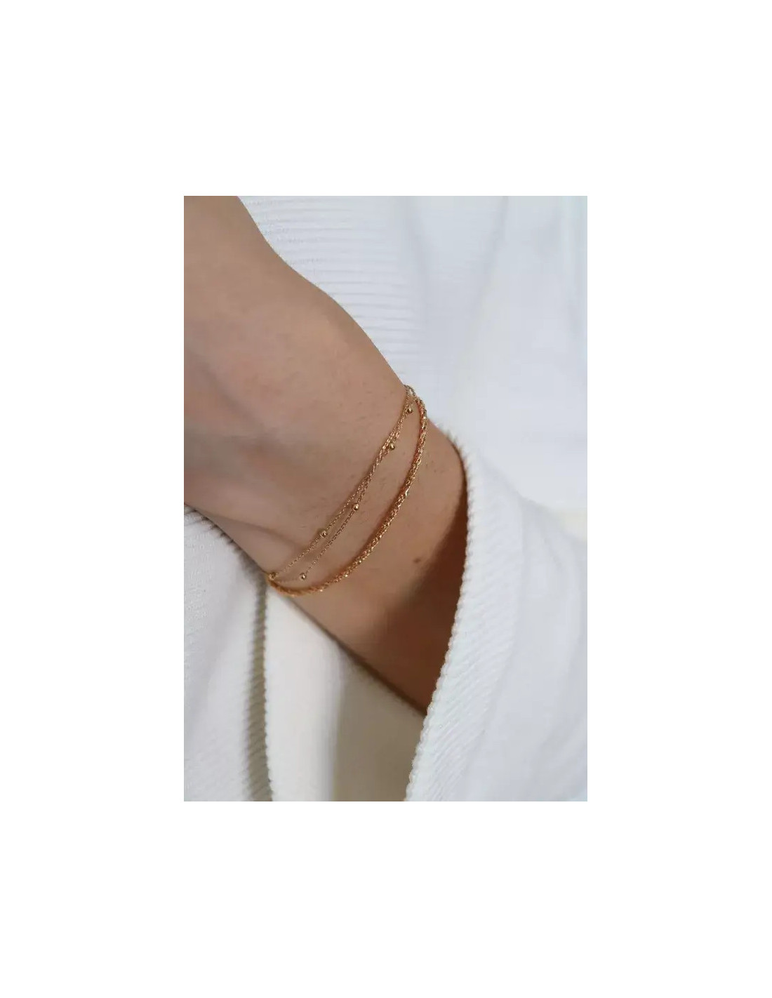 Pulsera formada por doble cadena con pequeñas cuentas.
