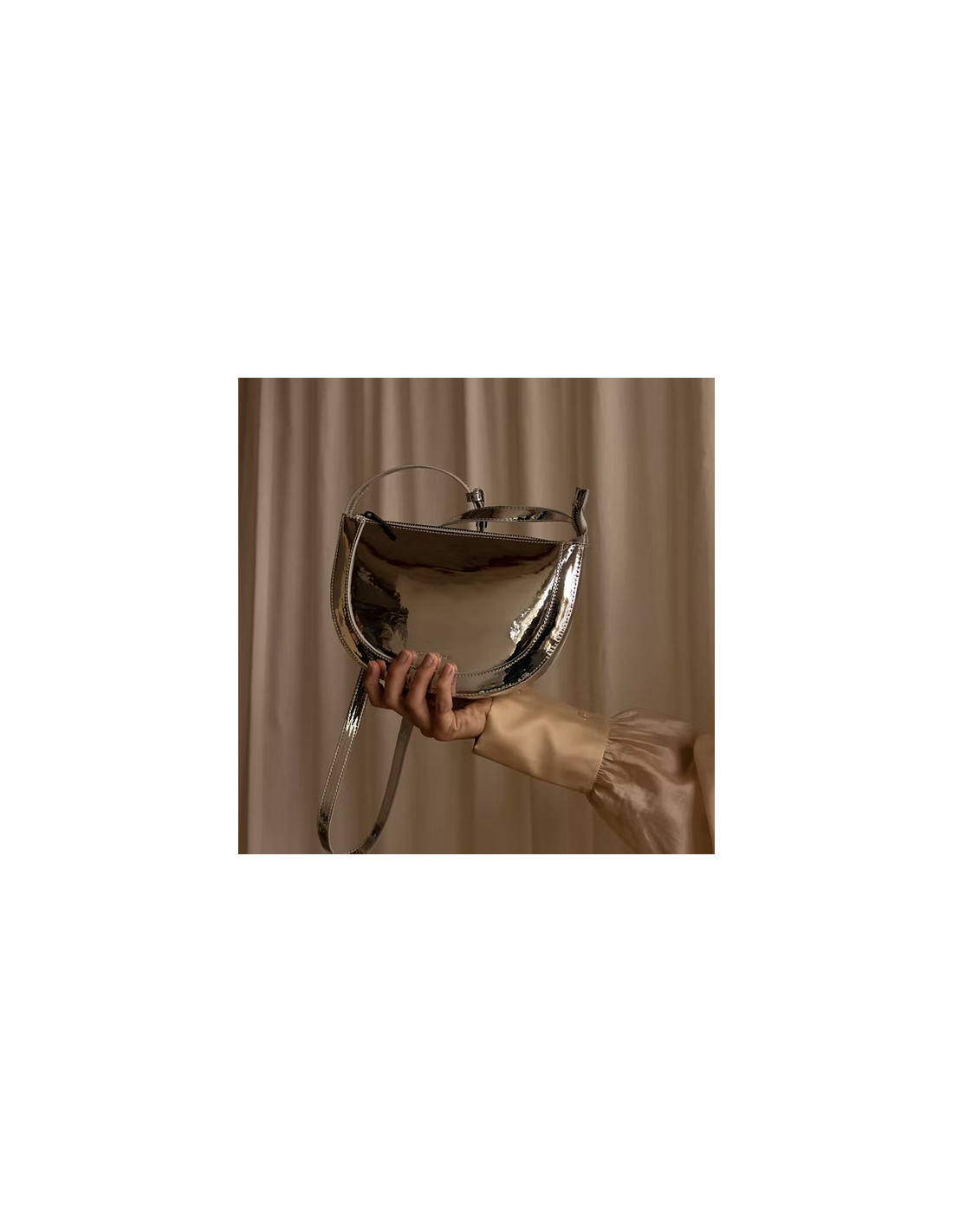 El bolso Farou, con su diseño de media luna, es la opción ideal para tu día a día. Mantiene tus objetos esenciales siempre a mano, mientras aporta un toque moderno y elegante a cualquier look.