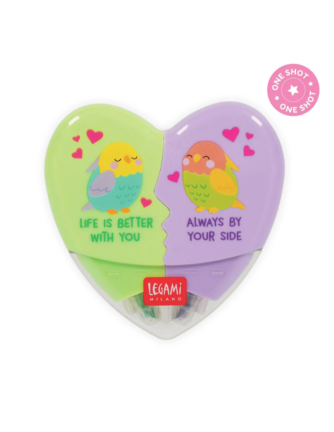 Cuando se libera amor en el mundo, ¡hay que subrayarlo! El Subrayador 2 en 1 Heartlighter de Legami, edición limitada, tiene forma de corazón y se divide en dos para resaltar todas las cosas importantes. ¡No te preocupes, ningún corazón se rompe! Solo une las dos mitades y vuelve a estar entero, listo para latir por alguien especial.